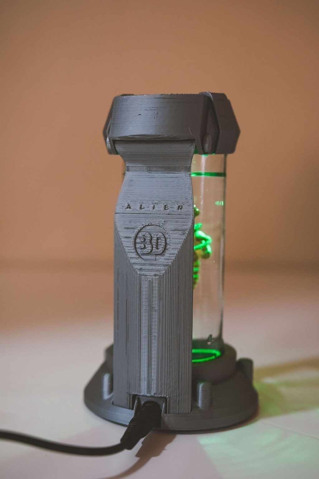 Lámpara Alien ContainerIlumina tu espacio con la fascinante Lámpara Alien Container, una obra maestra que fusiona lo mejor de la ciencia ficción con un diseño excepcional. Este singular contenedor de vidrio alberga en su interior una figura de Facehugger impresa en 3D y pintada a mano, creando un efecto visual impactante al llenarlo con agua.Características destacadas:Dimensiones: 17 cm de alto y 10 cm de diámetro.Iluminación LED: Funciona con un LED a 12 vol. Incluye interruptor y fuente para enchufar en la corriente.Transforma tu hogar en un espacio lleno de misterio y estilo con esta lámpara única. ¡No te pierdas la oportunidad de tener la Lámpara Alien Container en tu hogar!